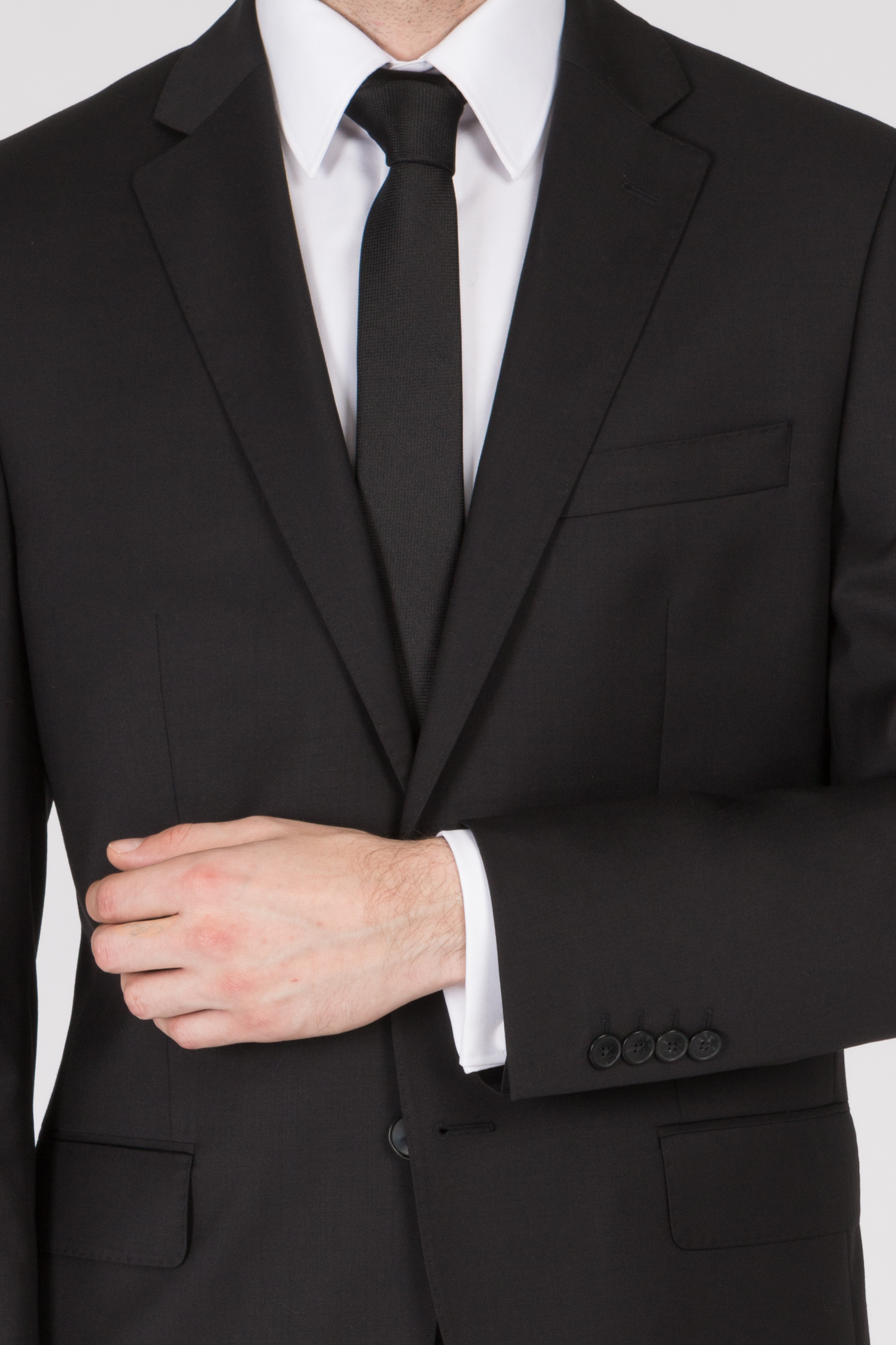 Costume noir uni en pure laine, tissu Lanificio Cerruti